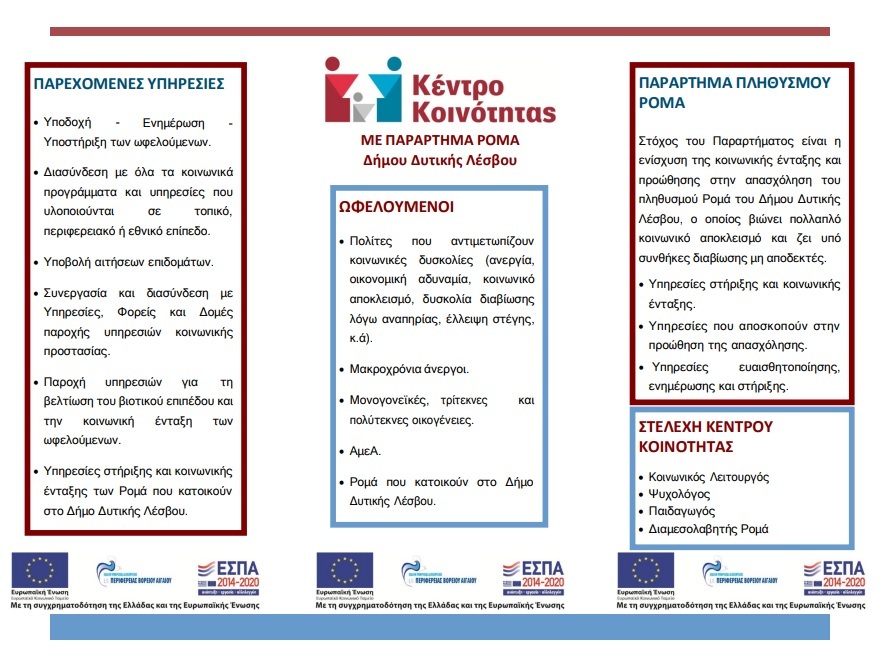 Ο Δήμος Δυτικής Λέσβου ανακοινώνει την έναρξη λειτουργίας του Κέντρου Κοινότητας με Παράρτημα Ρομά του Δήμου Δυτικής Λέσβου.