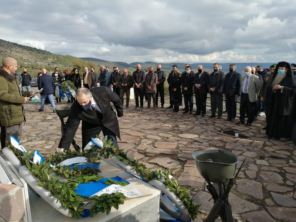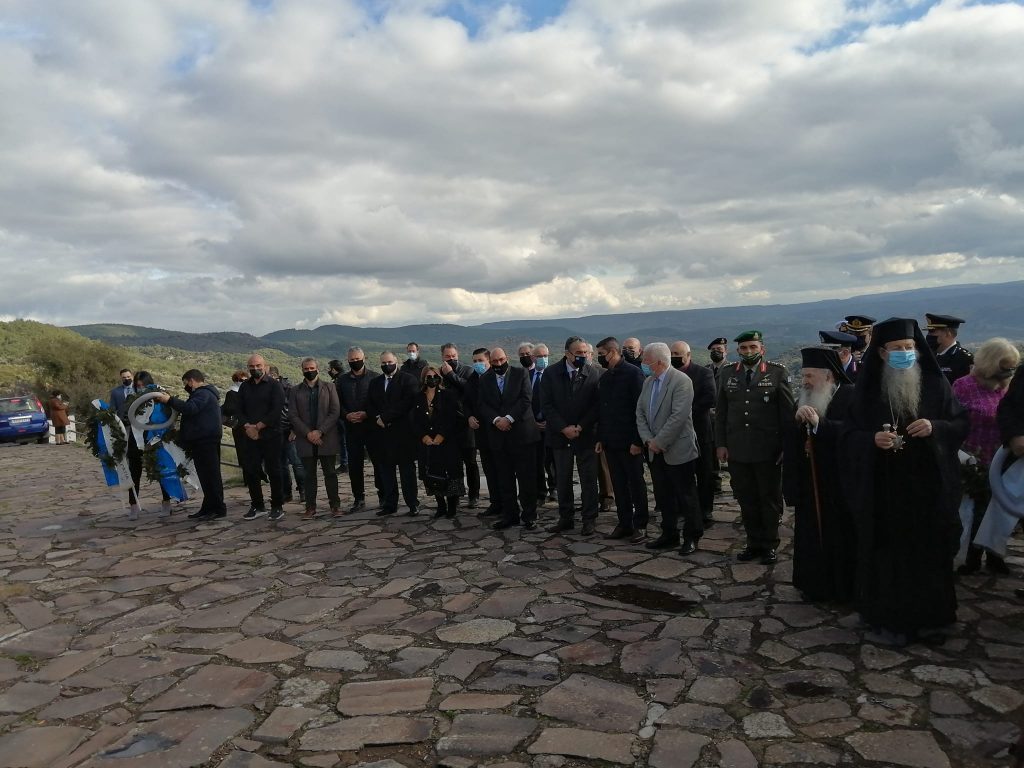 Λίγο μετά τις 11 το πρωί, ακολούθησε η Άνοδος στο λόφο του «Τυρανιδίου» στην στήλη των πεσόντων και εψάλη Τρισάγιο χοροστατούντων του Μητροπολίτη Μυτιλήνης κ.κ. Ιακώβου και Μηθύμνης κ.κ. Χρυσοστόμου, το Προσκλητήριο Πεσόντων, για να ολοκληρωθεί η τελετή με κατάθεση στεφάνων από τις αρχές.