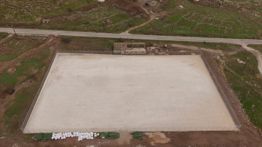 Με την ολοκλήρωση της διαμόρφωσης του αγωνιστικού χώρου, τις επόμενες ημέρες ξεκινά και η εγκατάσταση του τεχνητού τάπητα, ενώ παράλληλα προχωρούν όλες οι προβλεπόμενες εργασίες για την κατασκευή κερκίδας και αποδυτηρίων και των υπόλοιπων υποδομών του γηπέδου.