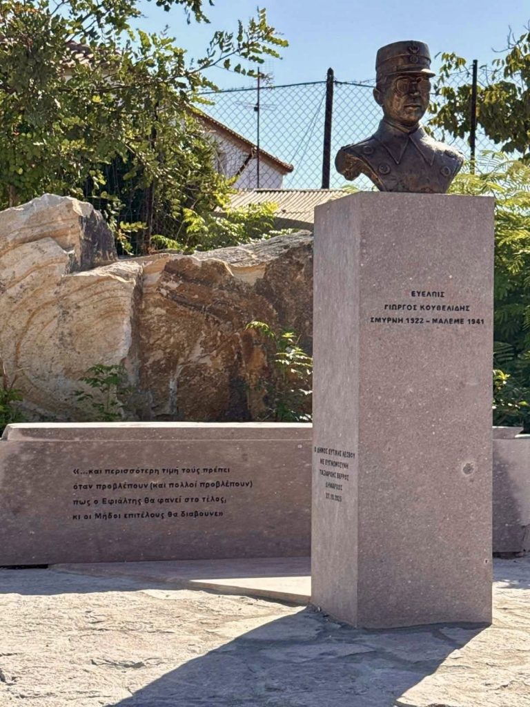 «Ο Δήμος Δυτικής Λέσβου και οι συμπατριώτες του Πολιχνιάτες αλλά και οι Μικρασιάτες του Δήμου μας, μαζί με τους Κρητικούς της Λέσβου τιμάνε, 84 χρόνια μετά την θυσία του, έναν 19χρονο ήρωα. Τον Εύελπη Γιώργο Κουβελίδη.