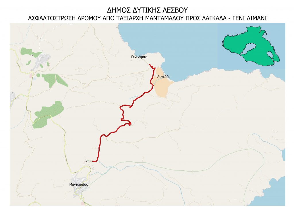 Αντικείμενο της μελέτης  είναι η βελτίωση τμήματος του υφιστάμενου αγροτικού δρόμου από το Δημοτικό Σφαγείο Μανταμάδου με κατεύθυνση τον οικισμό Γενί Λιμάνι της Δ.Ε. Μανταμάδου του Δήμου Δυτικής Λέσβου, συνολικού μήκους 5.300 μέτρων. Η ασφαλτόστρωση του δρόμου θα διευκολύνει την προσέγγιση στους φυσικούς βοσκοτόπους, σε κτηνοτροφικές μονάδες, σε τυροκομική μονάδα, στην παραλία της Λαγκάδας και στον οικισμό Γενί-Λιμάνι. Στο έργο αυτό προβλέπεται και εγκατάσταση δικτύων ύδρευσης που εκτός της προφανούς εξυπηρέτησης των κατοίκων και των επαγγελματιών στον πρωτογενή τομέα, θα συμβάλλει και στην τουριστική ανάδειξη της περιοχής, που επί του παρόντος δεν θεωρείται προσβάσιμη. Ο προϋπολογισμός αυτού του έργου είναι στα 1,2 εκ. ευρώ.