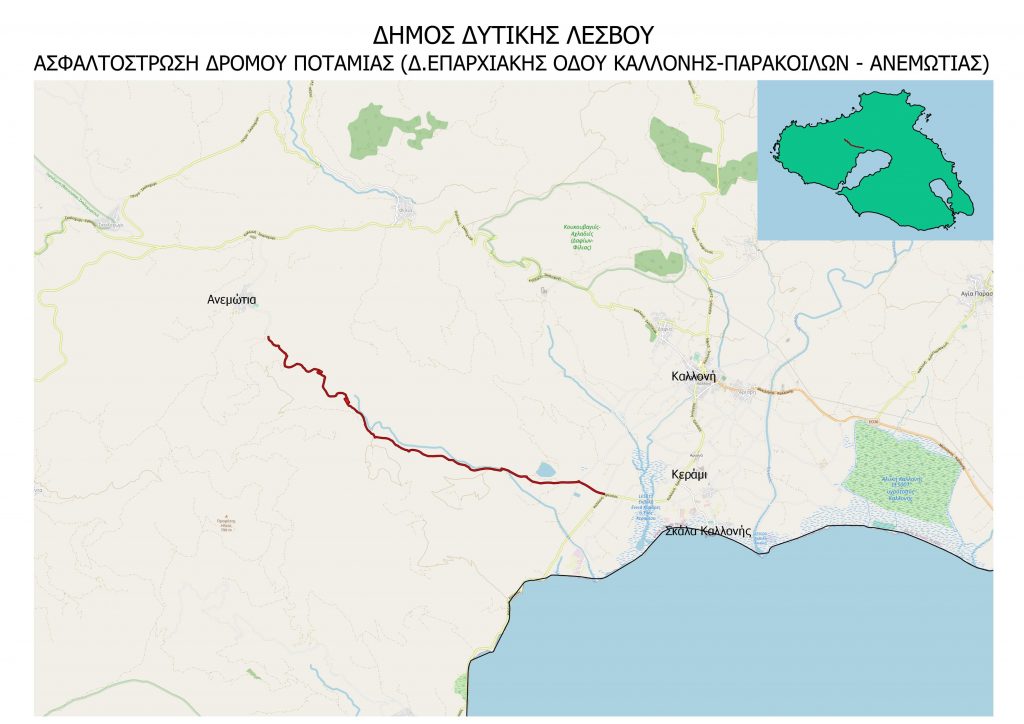 Ο δρόμος που έχει χαρακτηριστεί ως εκείνος της «Ποταμιάς» σχεδιάζεται από την Ανεμώτια ως την Επαρχιακή οδό Καλλονής-Παρακοίλων, είναι προϋπολογισμού 1,3 εκ. ευρώ και αποτελεί πάγιο αίτημα πολλών ετών, ειδικά εκ μέρους των αγροτών και των κτηνοτρόφων των χωριών. Αντικείμενο της μελέτης είναι η βελτίωση τμήματος του υφιστάμενου αγροτικού δρόμου από το 4ο χλμ της Επαρχιακής οδού Καλλονής-Παρακοίλων  με κατεύθυνση τον οικισμό Ανεμώτια, συνολικού μήκους 8.710 μέτρων. Το έργο θα διευκολύνει την προσέγγιση στους φυσικούς βοσκοτόπους, σε κτηνοτροφικές μονάδες, σε αγροκτήματα, σε ελαιοκτήματα και κυρίως του οικισμού Ανεμώτιας με αυτόν της Καλλονής.