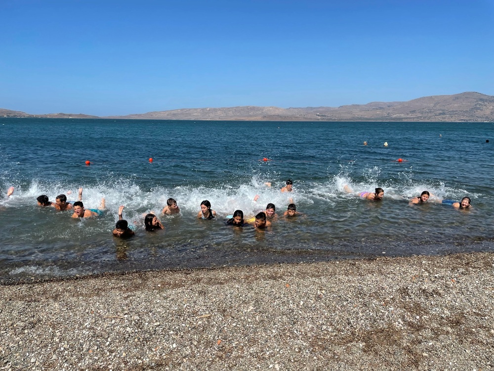Η πρώτη φάση του προγράμματος φιλοξενήθηκε στη Σκάλα Καλλονής σε 18 παιδιά και η δεύτερη στη Σκάλα Πολιχνίτου σε 32 παιδιά. Ο σκοπός ήταν να έρθουν τα παιδιά σε επαφή με το νερό –δεδομένης και της ανυπαρξίας κολυμβητηρίου τα τελευταία χρόνια στο νησί- να αθληθούν ξανά μετά τον μεγάλο εγκλεισμό της πανδημίας και να αναπτύξουν δεξιότητες στο κολύμπι. Όλα αυτά με την παράλληλη γνωριμία τους με το περιβάλλον και την ατομική μας ευθύνη απέναντι σε αυτό.