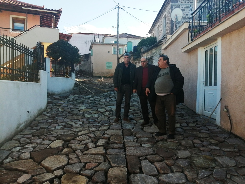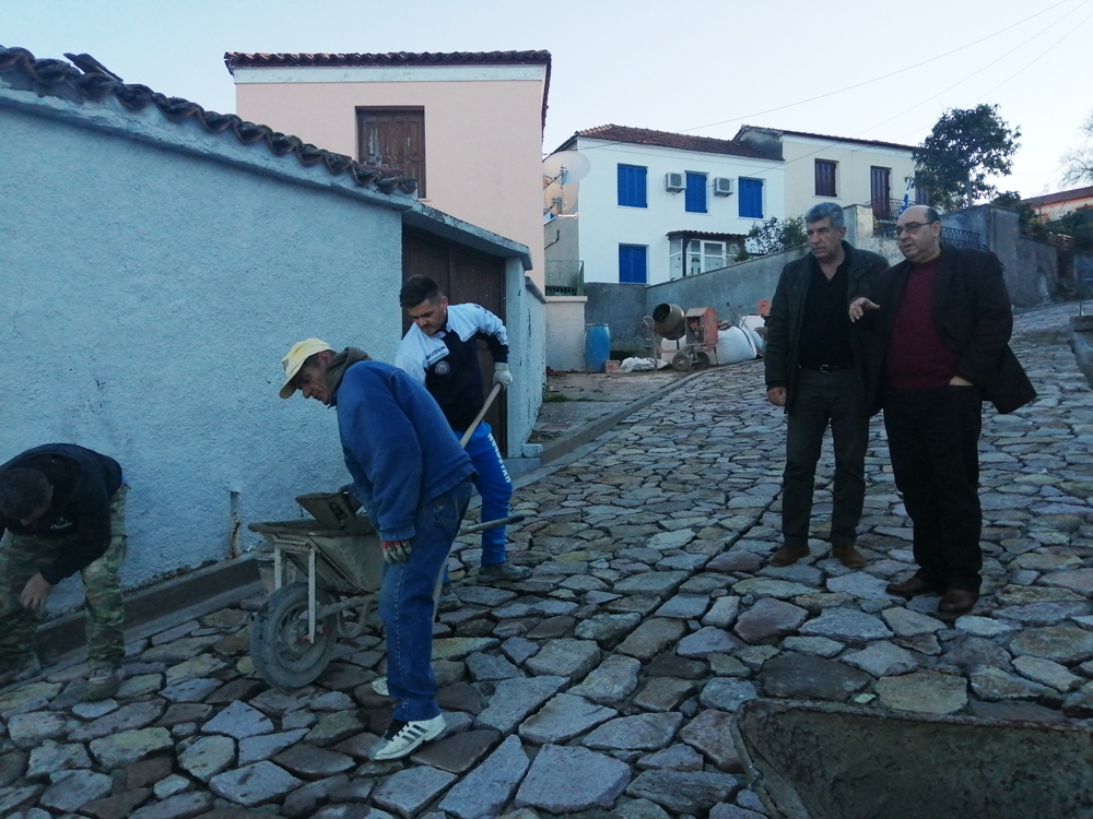 Παρουσία και του Προέδρου του Μανταμάδου, ο Δήμαρχος και ο Αντιδήμαρχος Έργων στις εργασίες πλακόστρωσης στον οικισμό