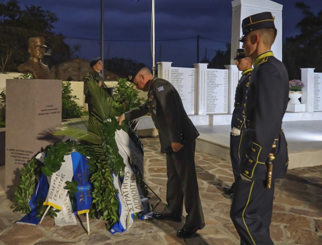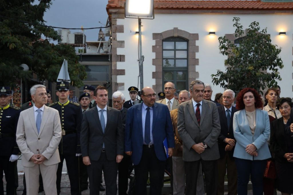 Ακολούθησε επιμνημόσυνη δέηση και κατάθεση στεφάνων από τον εκπρόσωπο της κυβέρνησης Δημήτριο Γλυμή, τον Δήμαρχο Δυτικής Λέσβου Ταξιάρχη Βέρρο, τον Αντιδήμαρχο Γιώργο Αλάνη εκ μέρους του ΔΣ του Δήμου Δυτικής Λέσβου, τους Βουλευτές Χαράλαμπο Αθανασίου, Παναγιώτη Δουδωνή, Μαρία Κομνηνάκα, εκπρόσωπο του απουσιάζοντος στη Λήμνο βουλευτή Παναγιώτη Παρασκευαΐδη, τον Εκτελεστικό Γραμματέα της Περιφέρειας Βορείου Αιγαίου Άρη Ελευθερίου ως εκπροσώπου του Περιφερειάρχη βορείου Αιγαίου Κωνσταντίνου Μουτζούρη, τον Υποστράτηγο Διοικητή της 98 ΑΔΤΕ Νικόλαο Γκρέτσα και τον Υποστράτηγο Γενικό Περιφερειακό Αστυνομικό Διευθυντής βορείου Αιγαίου Μιχαήλ Σεβδυνίδη, εκπρόσωπο των αποστράτων Αξιωματικών, καθώς και την Πρόεδρο του Συλλόγου Κρητών Λέσβου Κατερίνα Τζαγκαράκη και την Πρόεδρο του Συλλόγου Μικρασιατών Δυτικής Λέσβου Μένη Ατσικμπάτση.
